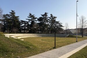 The project redesigns a strategic area of the city, transforming it into a contemporary green space. The intervention establishes a renewed architectural identity for the site, accommodating both sports activities and everyday use while ensuring full accessibility to public spaces and a balanced relationship between green surfaces, paved areas, pedestrian paths, and vehicular circulation. The new park defines a strong contemporary character through an integrated system of collective spaces: the multifunctional sports area, the skate arena, the new playground, the tree-lined square, the open-air arena, the refreshment point, and the dog area. At the heart of the project, the central playground—conceived as a large, open, and flexible space—acts as a social device where school life, community activities, sports, and creativity intersect and evolve throughout the day.